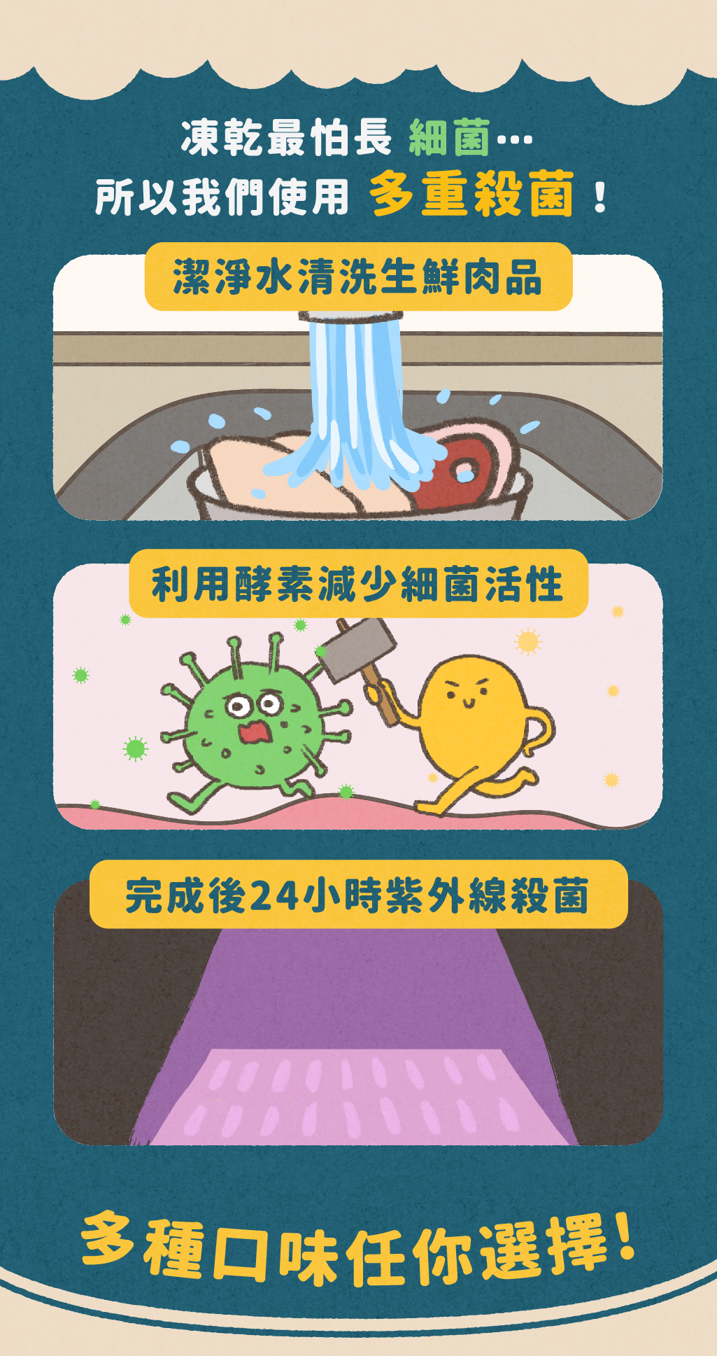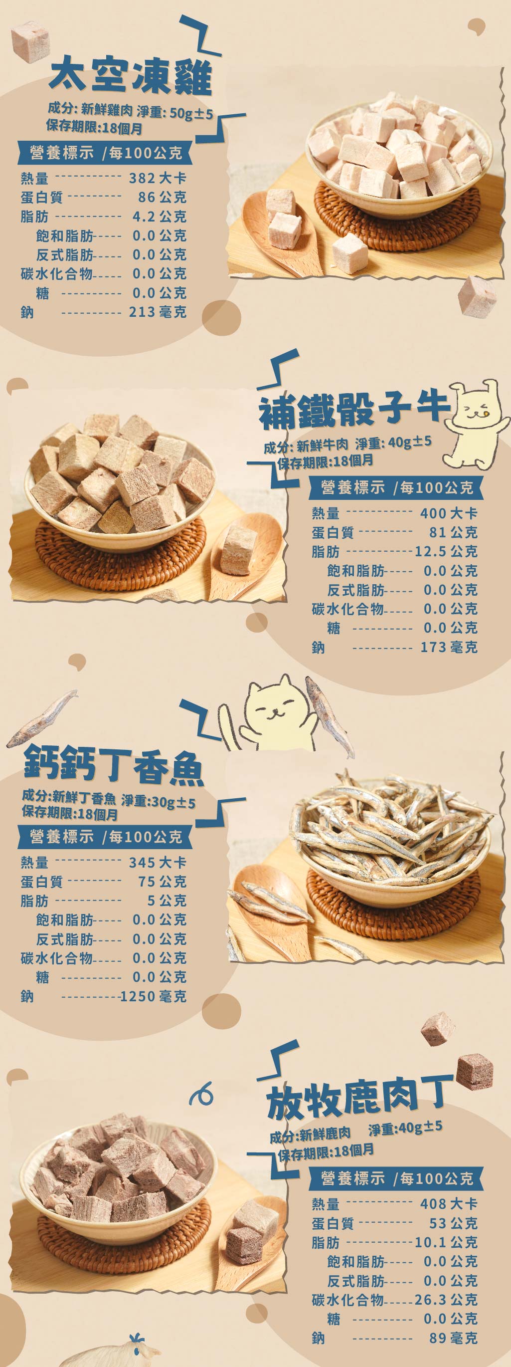 天然食材-50度急速冷凍,真空低溫乾燥製成,讓毛小孩滿足口慾,消磨焦慮時光!